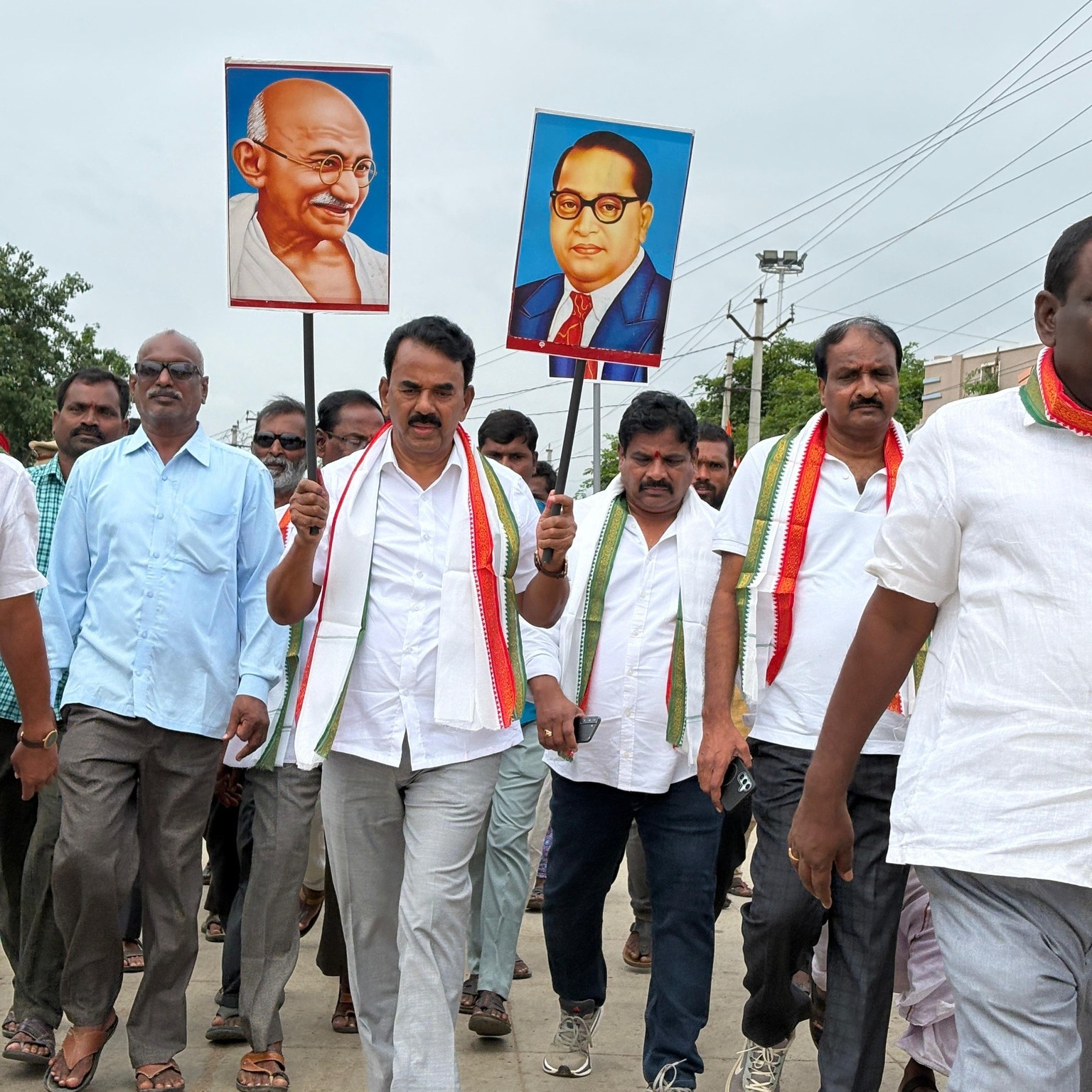 ఈ సందర్భంగా మంత్రి జూపల్లి మాట్లాడుతూ… రాజ్యాంగం అమలులోకి వచ్చి 75 సంవత్సరాలు పూర్తయిన సందర్భంగా రాజ్యాంగ విలువలపై ప్రజల్లో అవగాహన పెంచడమే ఈ యాత్ర లక్ష్యమని పేర్కొన్నారు. ప్రజాస్వామ్యాన్ని రక్షించుకోవడానికి రాహుల్ గాంధీ గారు జై బాపు, జై భీమ్, జై సంవిధాన్ ఉద్యమానికి పిలుపునిచ్చారని తెలిపారు. భారత రాజ్యాంగాన్ని, దేశ సమగ్రతను కాపాడుకునేందుకు రాహుల్ గాంధీ, మల్లికార్జున ఖర్గే నేతృత్వంలో కాంగ్రెస్ పార్టీ పోరాటం చేస్తోందని వెల్లడించారుచ